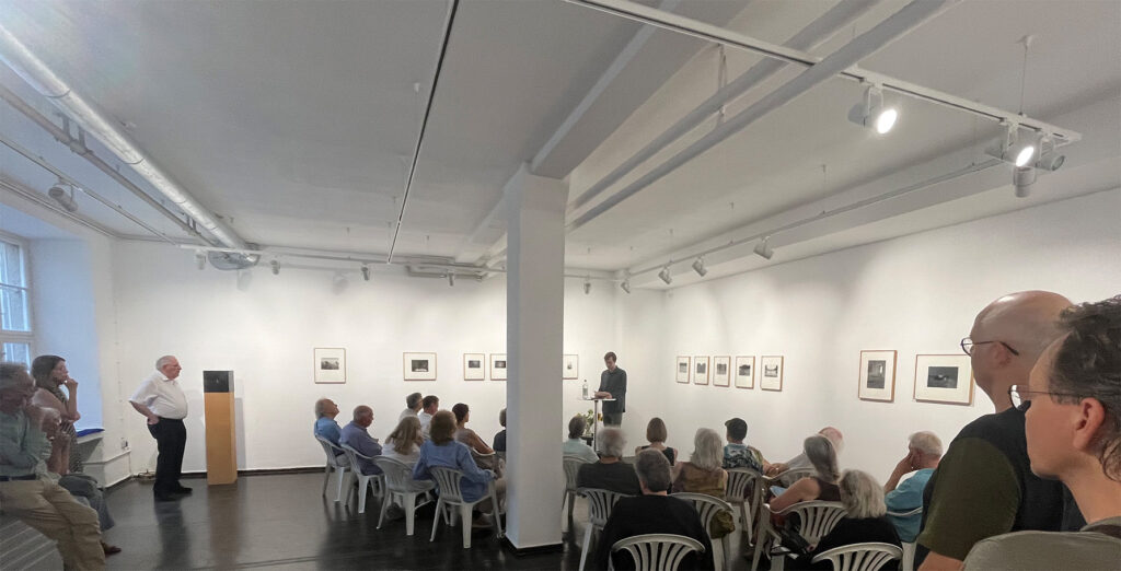 Paul Bräg hielt einen Vortrag zu den wichtigsten Gedanken seiner Dissertation über Kurt Bennings Gesamtwerk, die im nächsten Jahr publiziert werden soll. Bereits druckfrisch präsentieren konnte Andreas Strobl die von Ihm herausgegebene Festschrift, für die viele Freunde des Künstlers eindrückliche Erinnerungen an den Jubilar geteilt haben. Das Buch kann noch direkt (Stand September 2025) bei der Stiftung bezogen werden: strobl.stiftung@kurt-benning.de (Preis 20 €)
